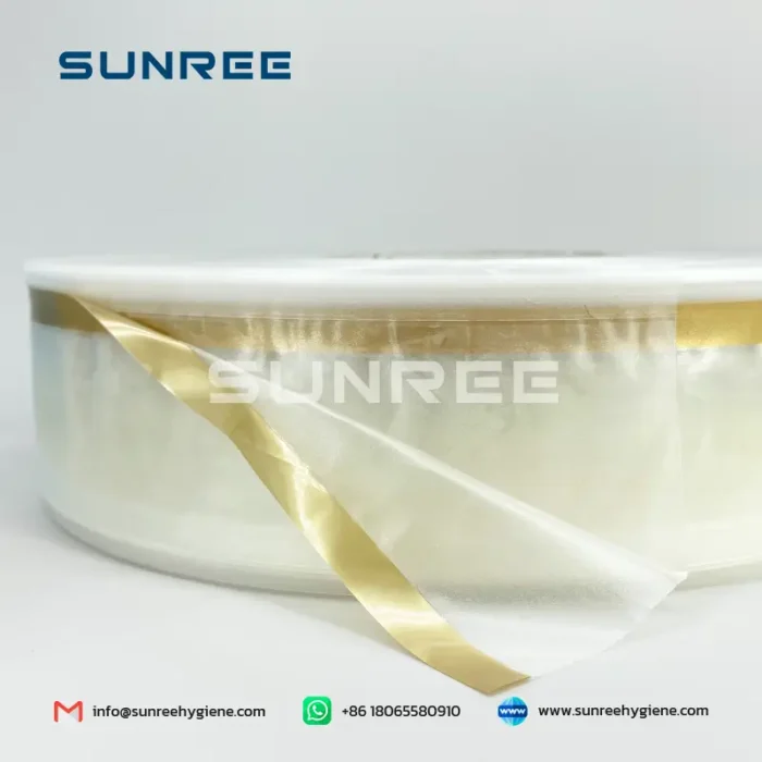 SUNREE Z-folded disposal tape closure system, extendible to several times its original length, SUNREE Z-fold tape allows easy and hassle-free closing of baby and adult pull-up diapers upon disposal. It is widely used for rolling up of adult incontinence pants and baby pull-ups pants.